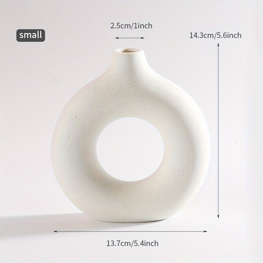 Home > 1pc; White Ceramic Vase White Vases For Decor; Modern Home Decor Vase; Boho Vases For Decor; Circle Vase; Round Vase; Donut Vase; Decorative Vase
